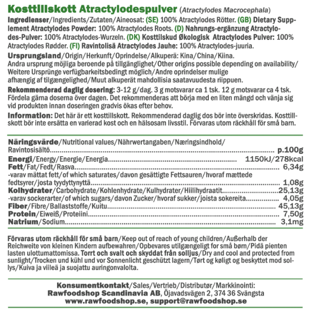 Vårt atractylodespulver framställs av rötterna från växten Atractylodes Macrocephala, som även kallas för bai zhu. Pulvret har en naturligt jordig karaktär och är enkelt att använda i vardagen – perfekt för dig som gillar att utforska vegansk matlagning och vill bredda dina smaker. Eftersom det är ett veganskt kosttillskott passar det utmärkt i en livsstil där hållbara val står i centrum.