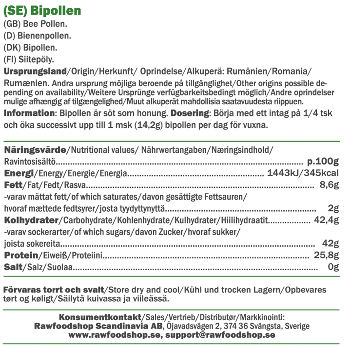 Bipollen är ett naturlig råvara som kombinerar färg, textur och smak på ett fantastiskt sätt. Pollenkornen, som består av små klumpar från olika växter, samlas in av flitiga bin och bjuder på en subtil sötma. Dessa gyllene små korn används ofta som en naturlig topping och dekoration på bakverk, men kan även blandas i yoghurt, müsli, granola eller smoothies för en extra dimension av naturlighet. För dig som föredrar en mildare smak går det utmärkt att lösa upp bipollen i vatten eller te, eller varför inte blanda dem med en matsked honung?