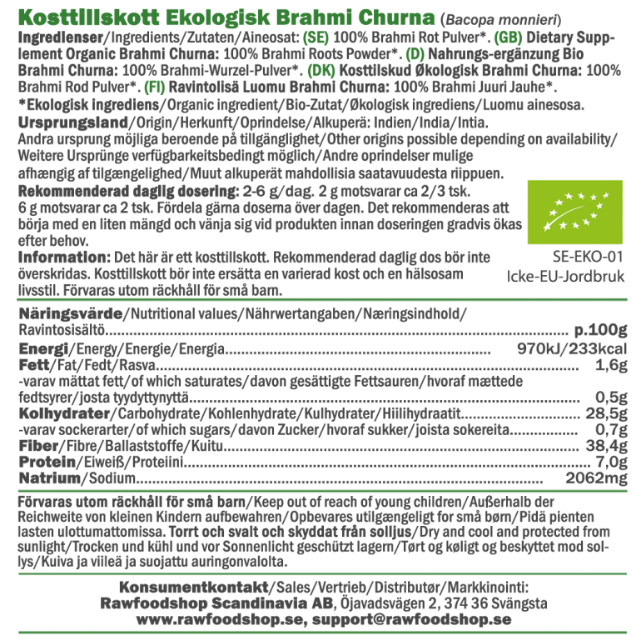 Brahmi Churna EKO är ett ekologiskt kosttillskott i pulverform med mild och neutral smak, vilket gör det enkelt att blanda ner i allt från smoothies och juicer till teer och varma drycker. För dig som gillar att experimentera i köket fungerar Brahmi Churna lika bra i bakverk, bröd och desserter som i matiga recept utan att ta över smaken. Med sitt ursprung från ayurveda blir det ett naturligt och veganskt kosttillskott som för in en känsla av kultur i dina dagliga rutiner.
