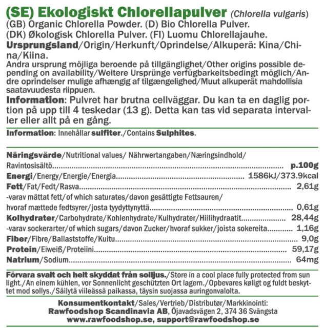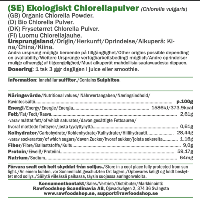 Chlorella är en encellig mikroalg som frodas i sötvatten och kännetecknas av sin djupa gröna färg, tack vare det höga innehållet av klorofyll. På Rawfoodshop erbjuder vi ekologiskt chlorellapulver av högsta kvalitet, noggrant utvalt för att passa in i din dagliga kost. Den unika smaken och färgen gör chlorella till ett spännande inslag i köket, perfekt för dig som vill utforska nya smakupplevelser.