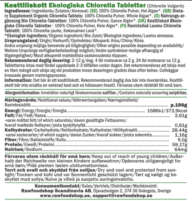 Chlorella är en encellig grönalg som i sin naturliga form växer i färskt vatten, och i dessa ekologiska chlorella-tabletter används alger av typen Chlorella vulgaris. Vår variant odlas i ett konstgjort vattenmagasin på en liten ö i Sydkinesiska havet, långt från fastlandet. Här används färskt vatten från underjordiska källor, vilket ger rena odlingsförhållanden utan påverkan från stadsmiljö. Tabletterna består till 100% av ekologiskt chlorellapulver och är fria från tillsatser och bindemedel, vilket gör dem till ett ekologiskt kosttillskott som passar utmärkt i en hållbar livsstil.
