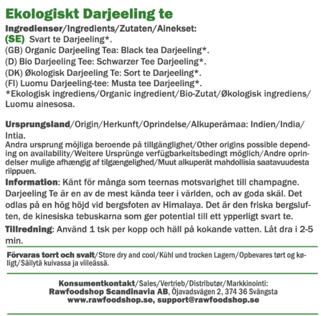 Darjeeling Te EKO är ett svart te som ofta kallas för teernas motsvarighet till champagne – och det är inte svårt att förstå varför. Odlingsområdena ligger högt uppe vid Himalayas fot, där klimat och jordmån bidrar till den distinkta karaktär som gjort detta te världsberömt. Smaken är lätt, elegant och ofta blommig, vilket gör det till en favorit för många teälskare världen över. Att brygga en kopp av detta ekologiska Darjeeling-te är mer än en vardagsrutin – det är en liten stund av ren njutning. Använd 1 tesked per kopp, häll på kokande vatten och låt dra i 2–5 minuter beroende på hur fylligt du vill ha ditt te.