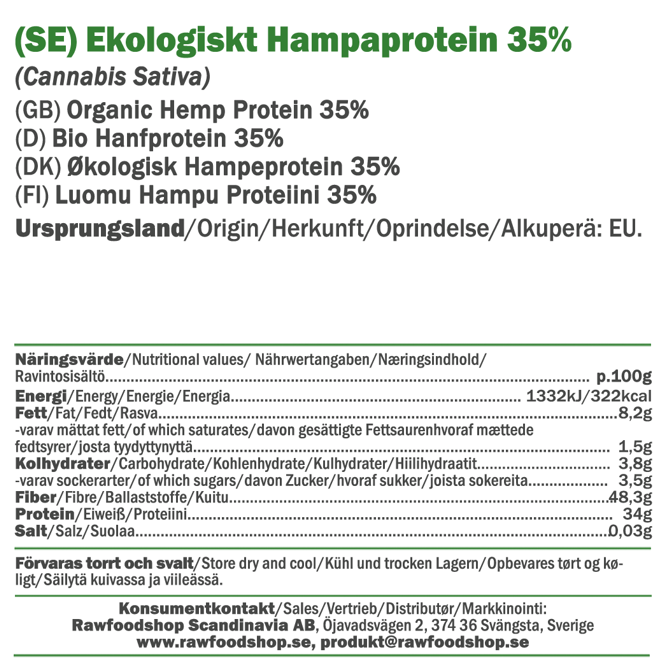 Ekologiskt hampaprotein 35%