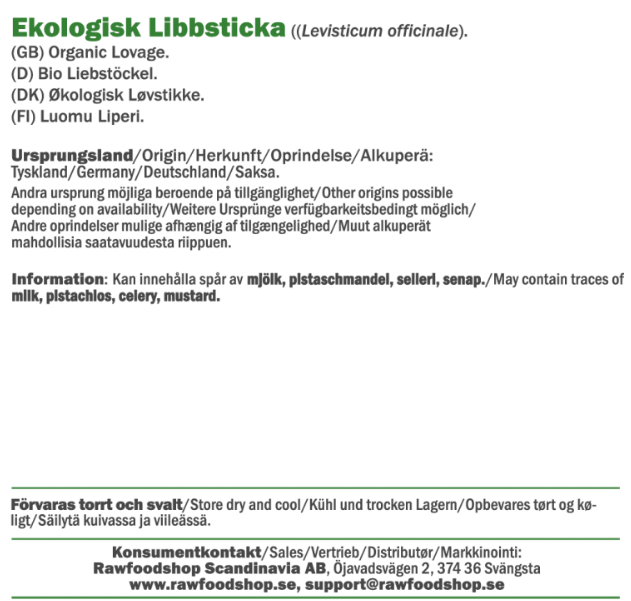 Libbsticka är en krydda som tar plats men samtidigt förhöjer andra ingredienser. Det här är en krydda som kan lyfta hela måltiden. Att den dessutom är ekologisk gör den till ett medvetet val för dig som värdesätter både smak och kvalitet. Oavsett om du är nyfiken på att utforska nya kryddor eller redan uppskattar den här smakrika örten, är libbsticka ett måste i kryddhyllan. En liten mängd räcker långt - smaken talar för sig själv.