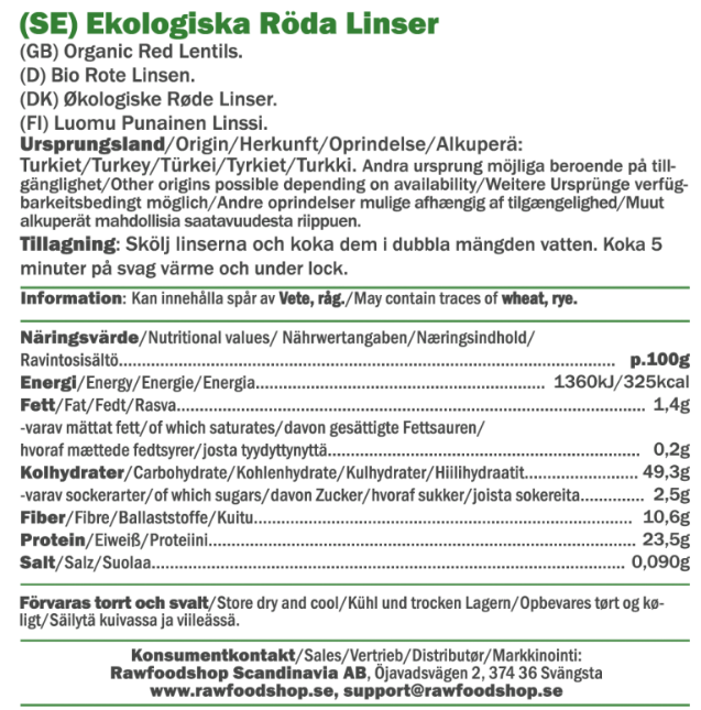 Röda linser är en basvara som är ett måste i köket, passar perfekt för soppor, grytor och sallader. Våra ekologiska röda linser är noggrant utvalda för att ge dig högsta kvalitet och en rik smakupplevelse. Med sin korta koktid är de ett praktiskt val för både vardagsmiddagar och mer kreativa recept.