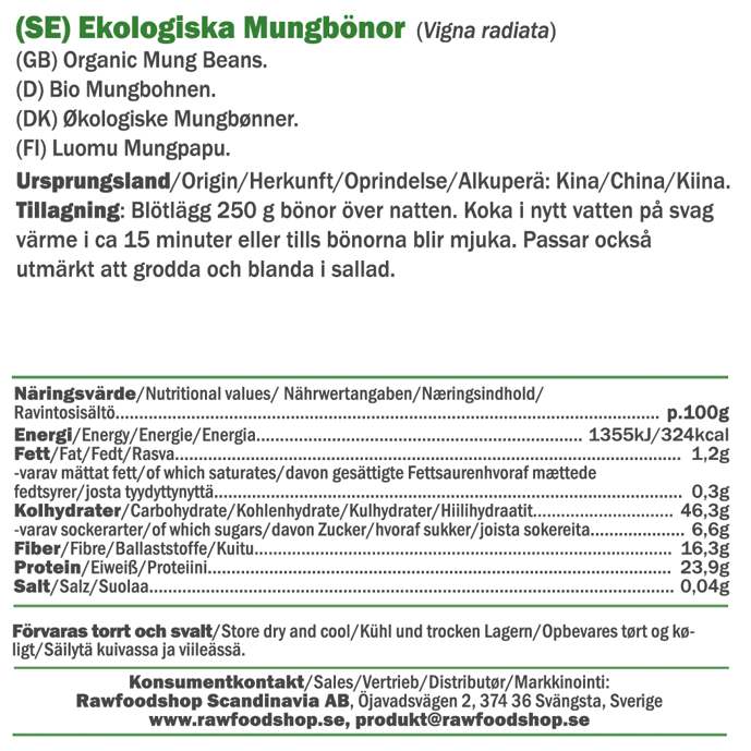 Mungbönor är ett utmärkt val för dig som vill utforska nya smaker och laga vegansk mat på ett enkelt och smakrikt sätt. Dessa små, gröna baljväxter är kända för sin milda smak och förmåga att absorbera kryddor, vilket gör dem perfekta i en mängd olika rätter. Använd dem i allt från mustiga soppor och smakrika grytor till fräscha sallader och krispiga mungbönsbiffar. Mungbönor kan också groddas för att skapa en extra krispig och näringsrik topping till dina favoriträtter. Tack vare sin ekologiska odling kan du njuta av mungbönor av hög kvalitet, fria från onödiga tillsatser.