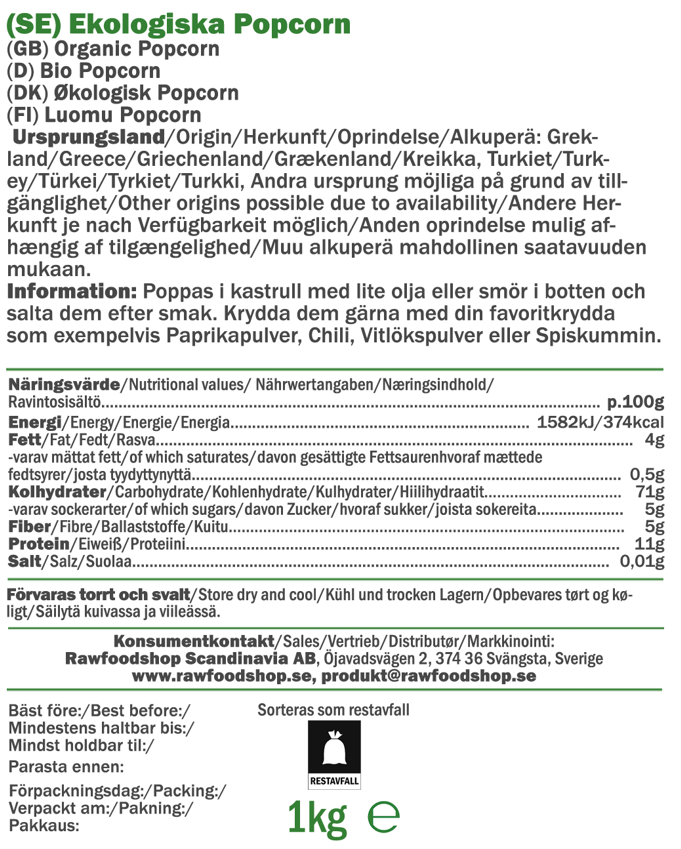 Popcorn EKO är det självklara valet för dig som vill njuta av riktigt goda och krispiga popcorn. Dessa ekologiska popcorn kärnor poppas enkelt i kastrull med lite olja eller smör i botten. På bara några minuter fylls köket av den välbekanta doften av nypoppade popcorn – en klassiker som aldrig går ur tiden. Dessa popcorn är ett naturligt och smakrikt alternativ som passar till alla tillfällen - oavsett om du ser en film, umgås med vänner eller bara är sugen på något gott till fredagsmyset.