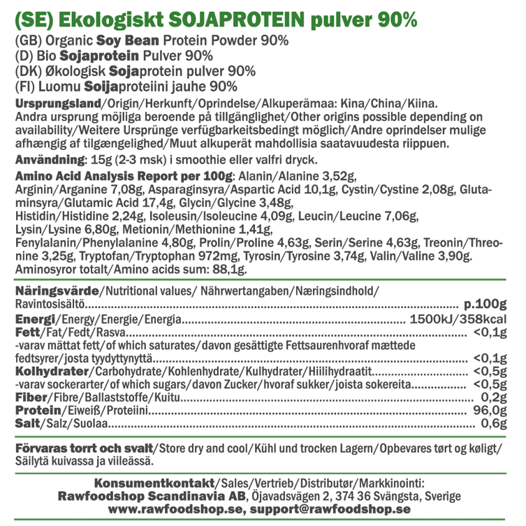 Sojaprotein 90% EKO har en fin, lättlöslig konsistens, vilket gör det enkelt att använda i olika proteinpulver-recept. Blanda det i proteinsmoothies, shakes, bakverk eller maträtter för ett extra inslag av veganskt protein utan att påverka smaken. Tack vare dess växtbaserade ursprung är det ett perfekt alternativ för veganer, vegetarianer och alla som söker en hållbar proteinkälla. Upptäck kraften i ekologiska sojabönor och låt detta sojaprotein bli en naturlig del av din dagliga rutin!